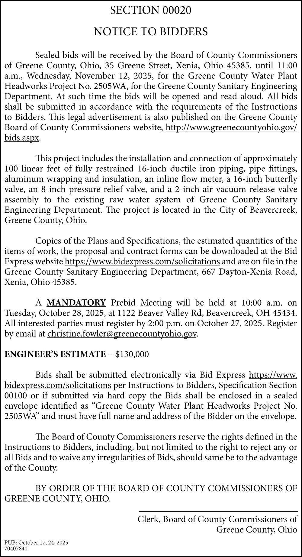 Oct 17, 2025. Greene County Board of County Commissioners Public Notice Ads from Fairborn Daily Herald
