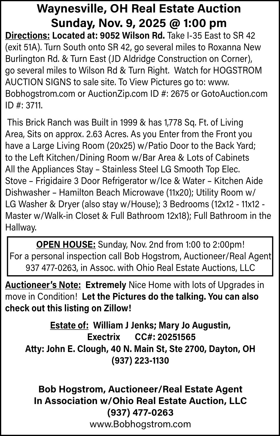 Oct 31, 2025. Bob Hogstrom Auctions Ads from Fairborn Daily Herald