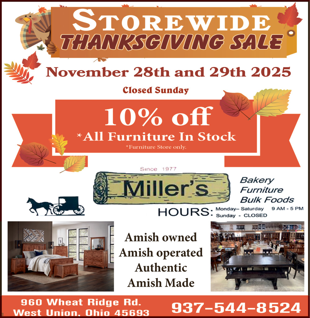 Nov 15, 2025. Miller's Bakery & Furniture Home Furnishing Ads from Fairborn Daily Herald