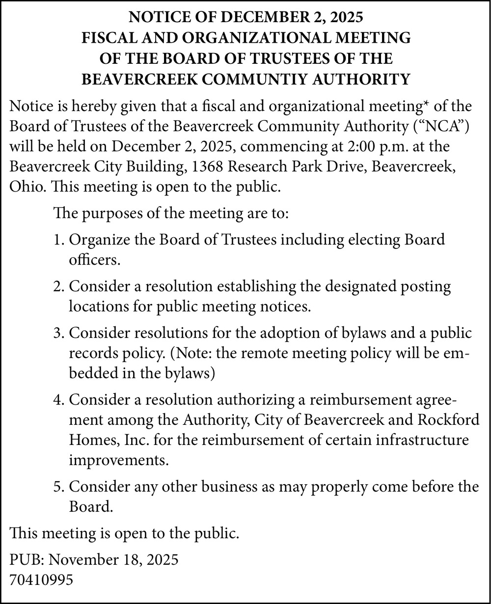 Nov 18, 2025. City of Beavercreek Public Notice Ads from Fairborn Daily Herald
