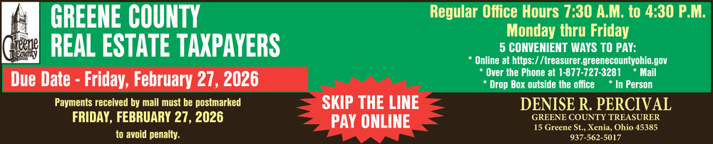 Feb 03, 2026. Denise R. Pervical - Greene County Treasurer Government Ads from Fairborn Daily Herald