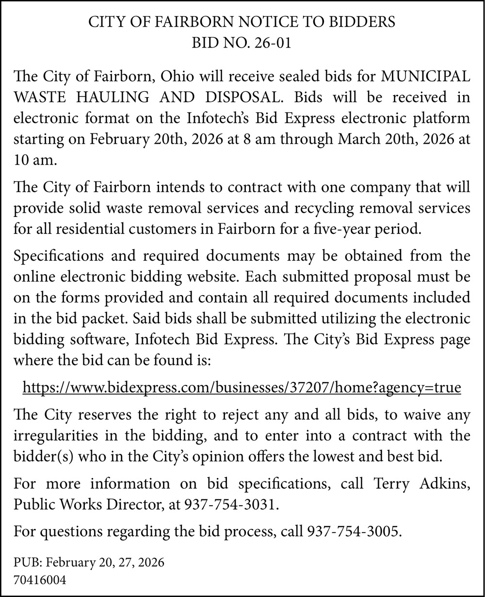 Feb 20, 2026. City of Fairborn Government Ads from Fairborn Daily Herald