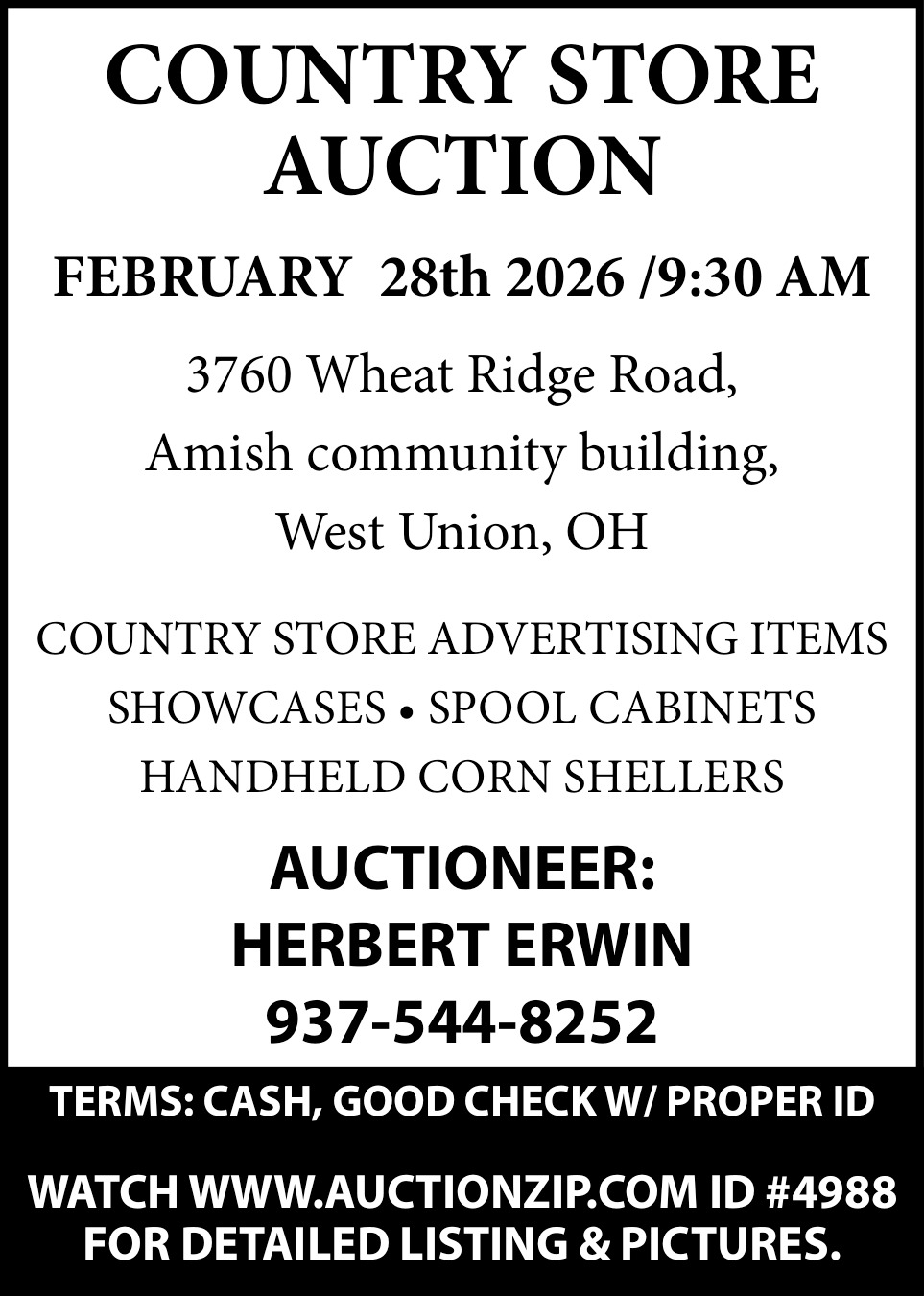 Ads for Herbert Erwin Auctioneer in West Union, OH