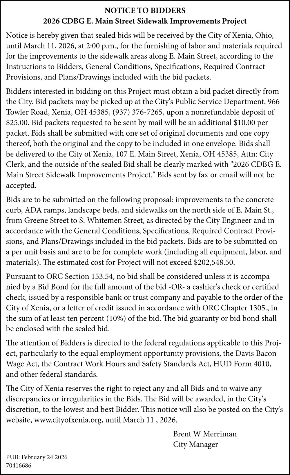 Feb 24, 2026. City of Xenia Public Notice Ads from Fairborn Daily Herald